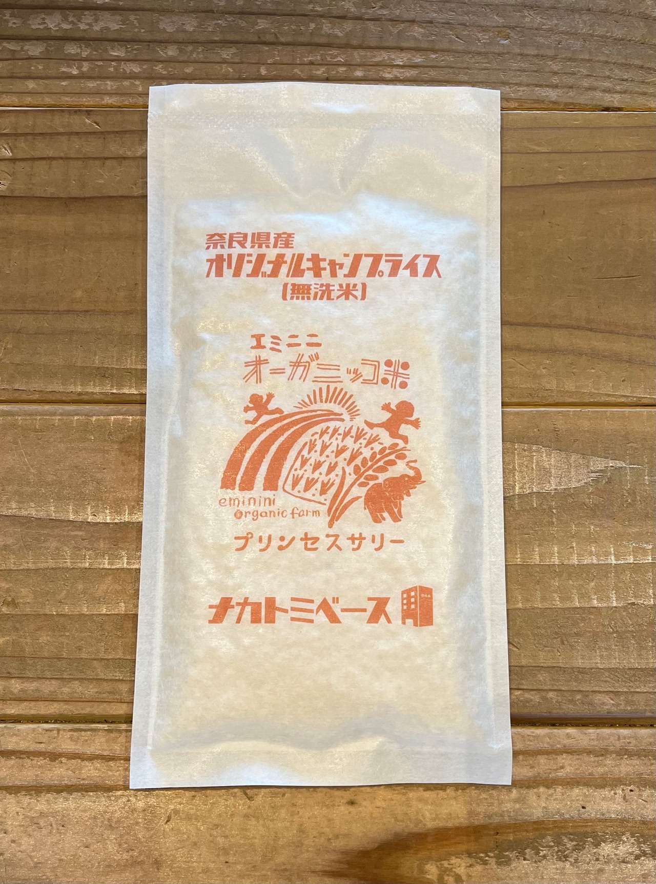 奈良の自然米農家のエミニニオーガニックさんに、キャンプ用の1合無洗米を作っていただきました。