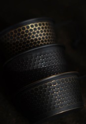 ご存じÆND SIERRA CUPの職人さんに一つずつへら絞りで作ってもらった後、さらなる工程で黒塗装を施してみました。銅は素材の中では変化のある素材です。銅のもつ性質を十分知ったうえでのご購入をお願いいたします。食べ物に触れる内側はニッケルメッキ加工をしています。