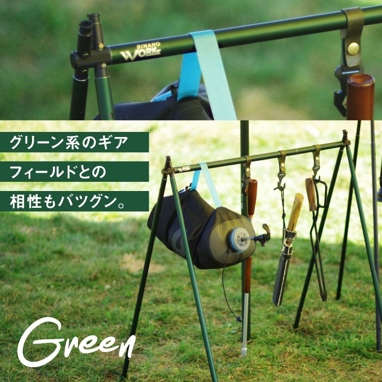 横幅68~99cm、高さ3段階(73cm,95cm,130cm)に対応するため、サイトの広さや、ハングする量にあわせて最適なサイズで使用が可能。