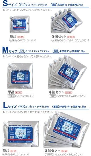 S、M、Lの3サイズ展開で、Sはお弁当用に、Mは小さいサイズのクーラーボックス、Lはフルサイズのクーラーボックスに最適です。