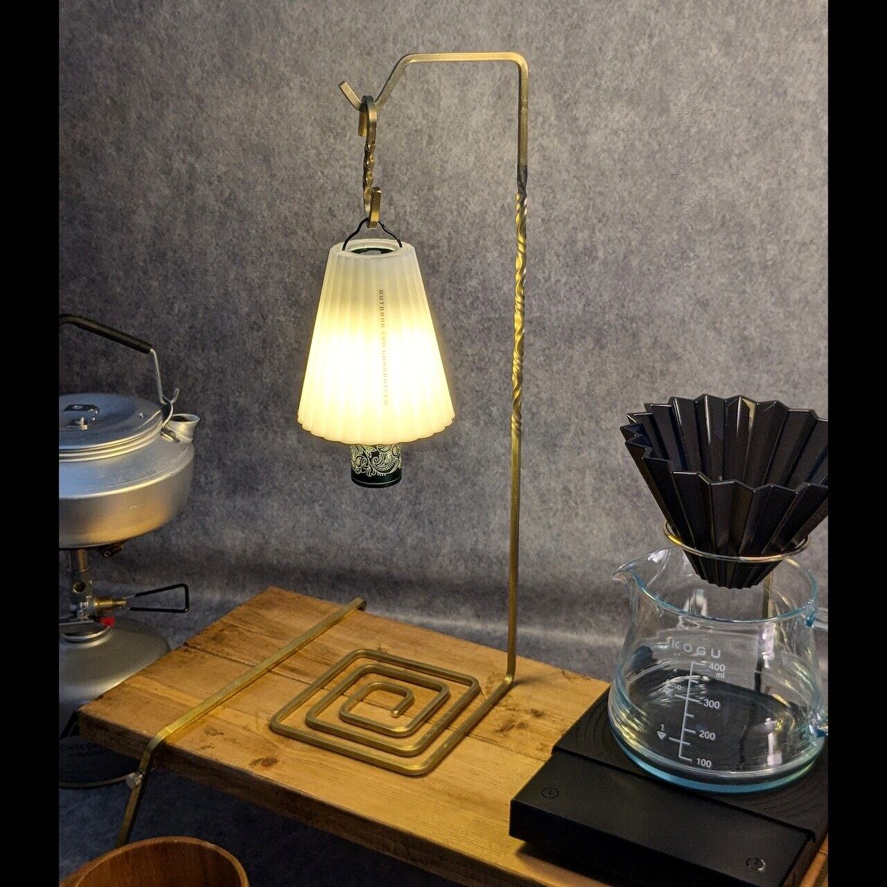 真鍮製のランタンスタンド、