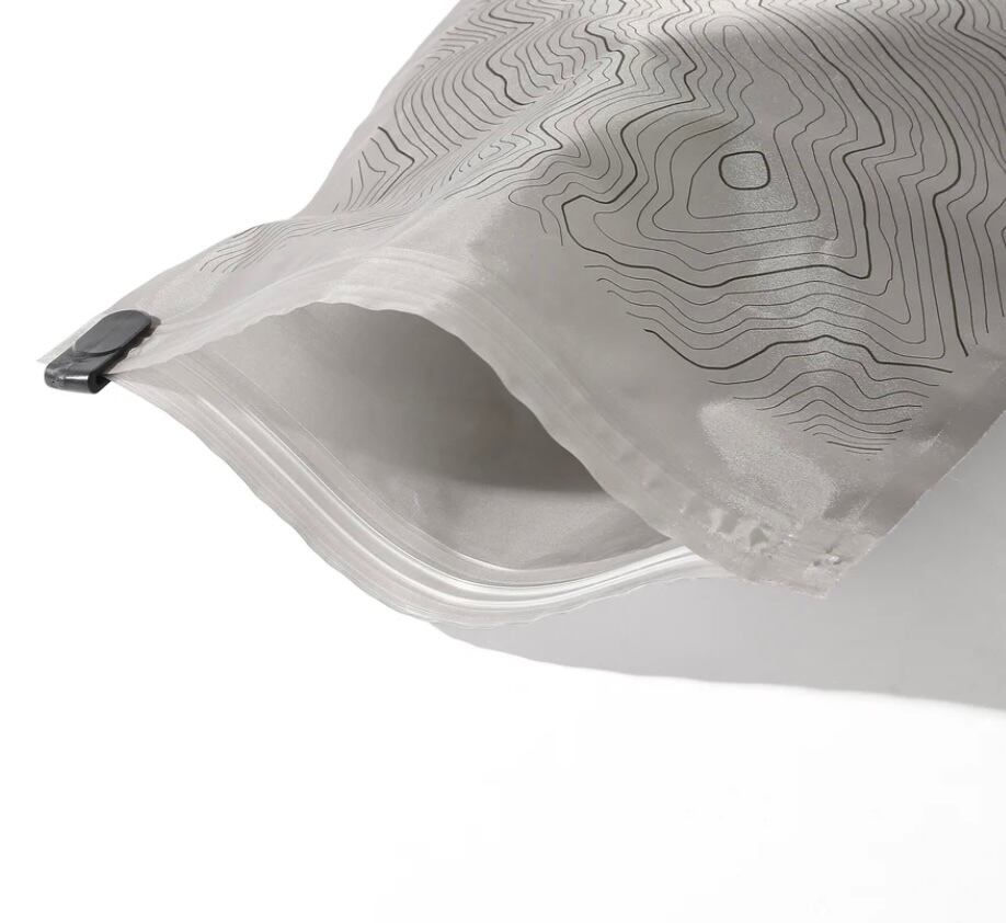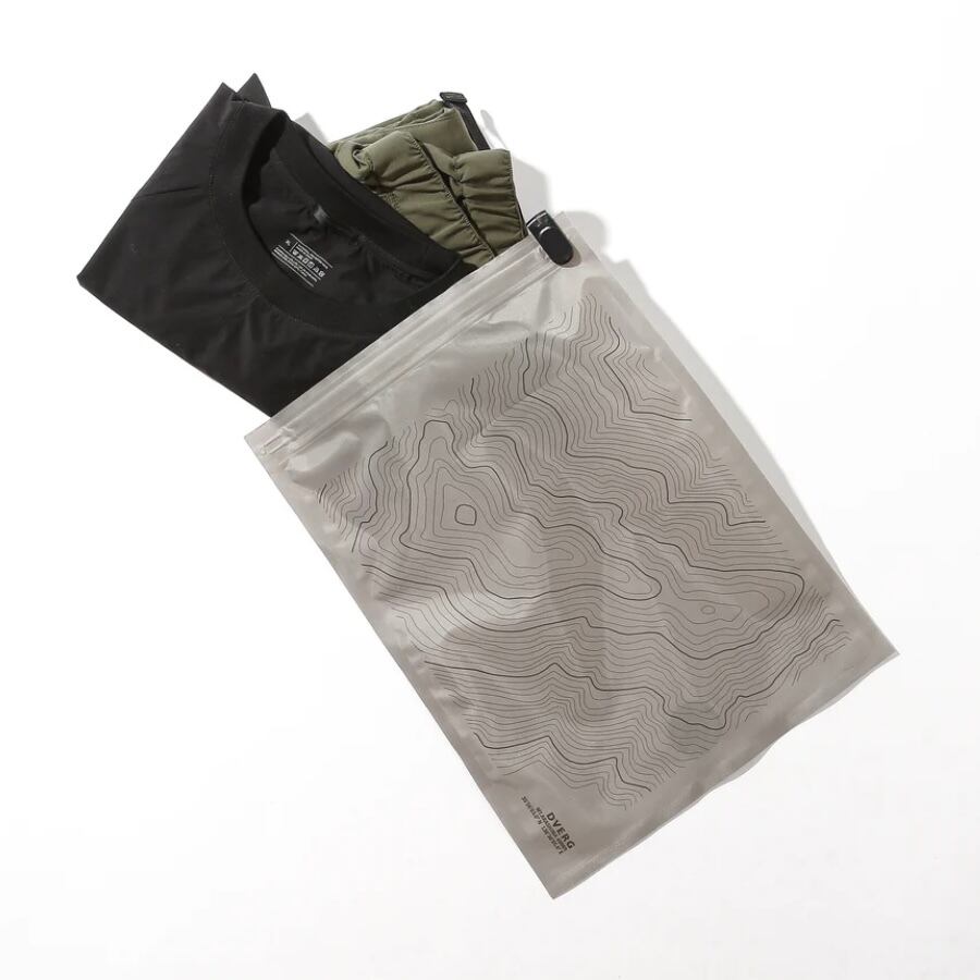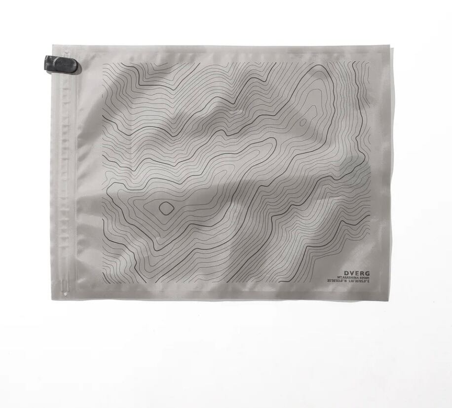片面には日本百名山「荒島岳」の等高線をプリント。袋の中身が見えづらくシンプルなデザインで、旅先でも人目を気にせず荷物を広げられます。