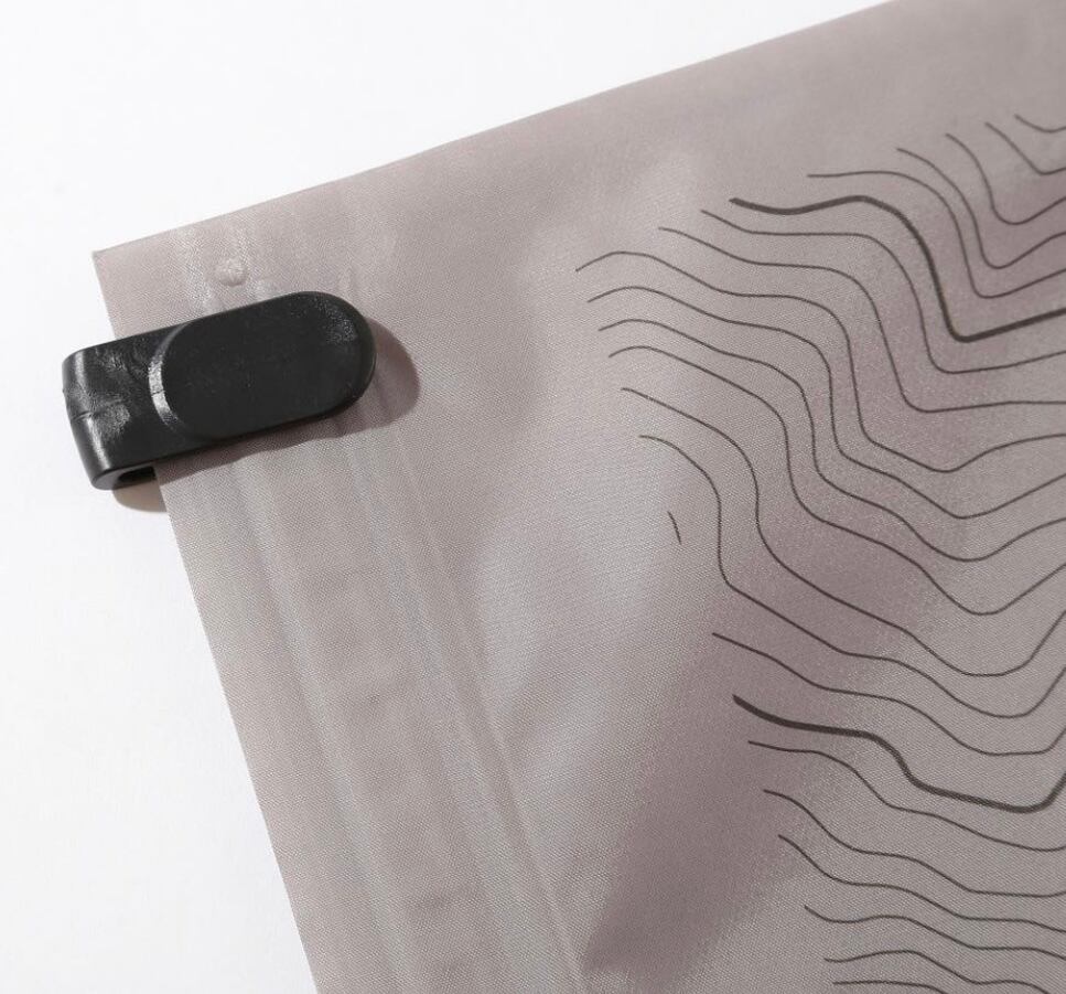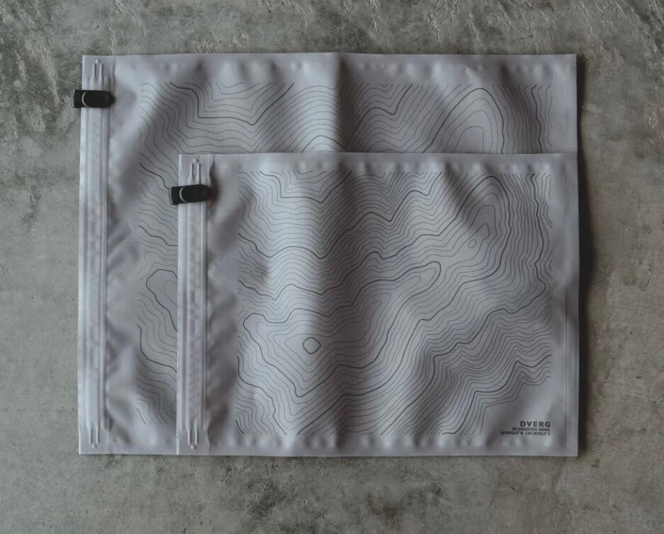 片面には日本百名山「荒島岳」の等高線をプリント。袋の中身が見えづらくシンプルなデザインで、旅先でも人目を気にせず荷物を広げられます。