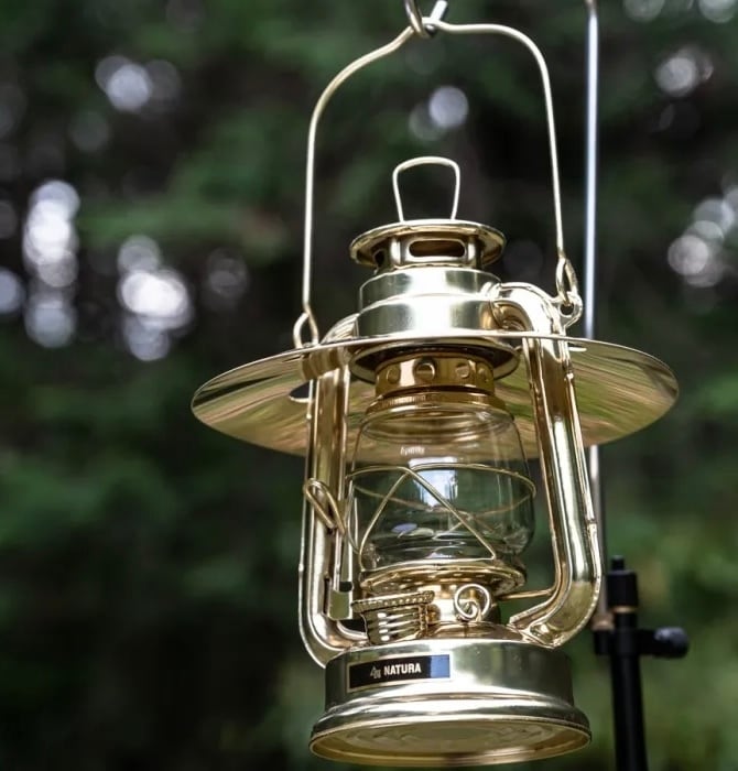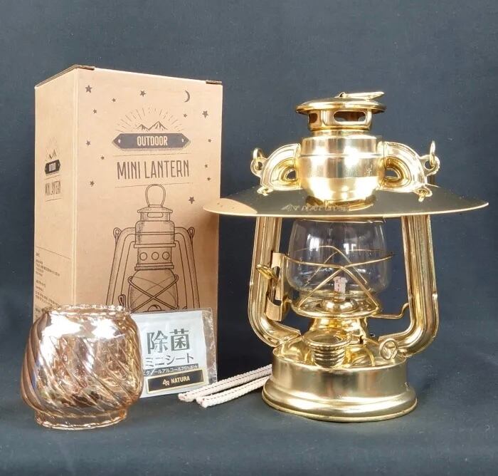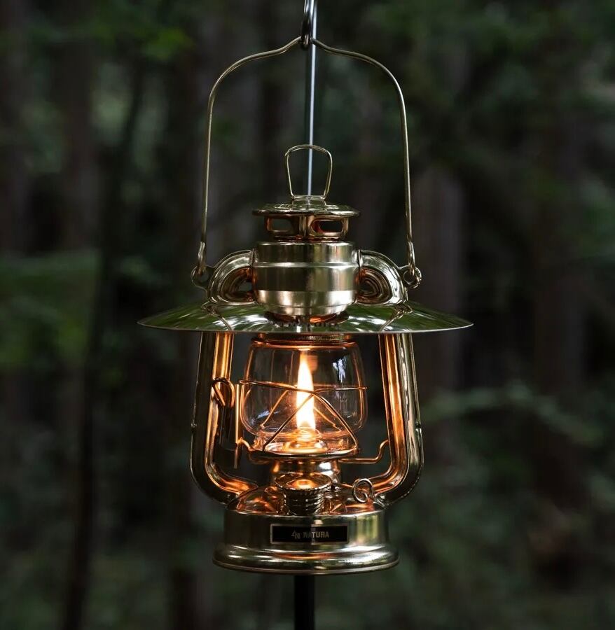 綺麗なフォルムと金色の輝きは、インテリアとしてもお使いになれますし、すでにオイルランタンを多数お持ちの方やこれからキャンプを始めようとしている方にもオススメです。