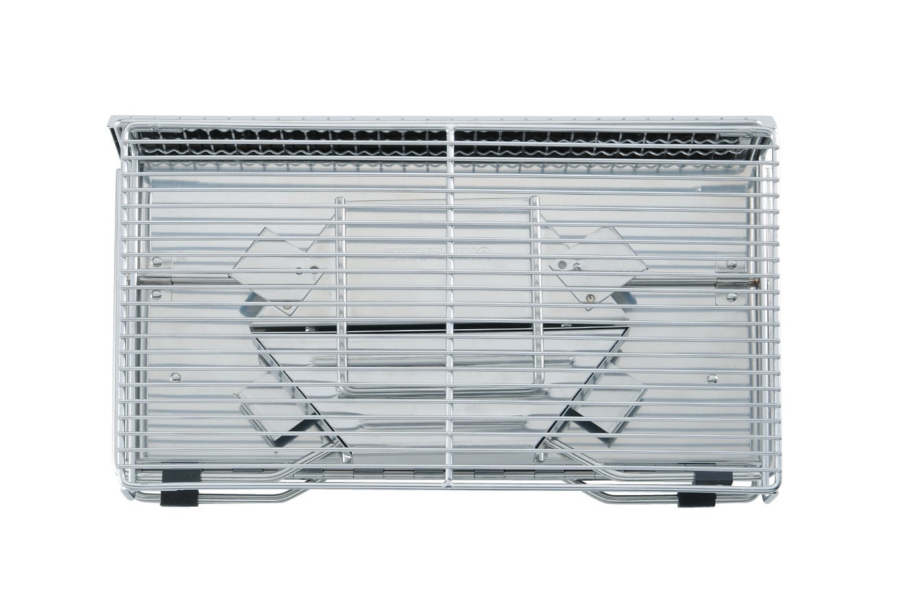 内側のセラミックパネルが熱せられることで、遠赤外線の熱を効率よく焼き網まで伝えます。