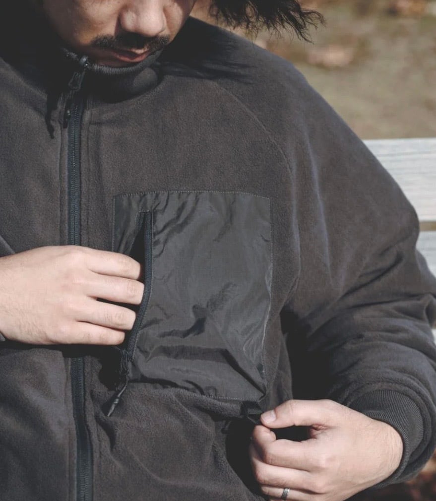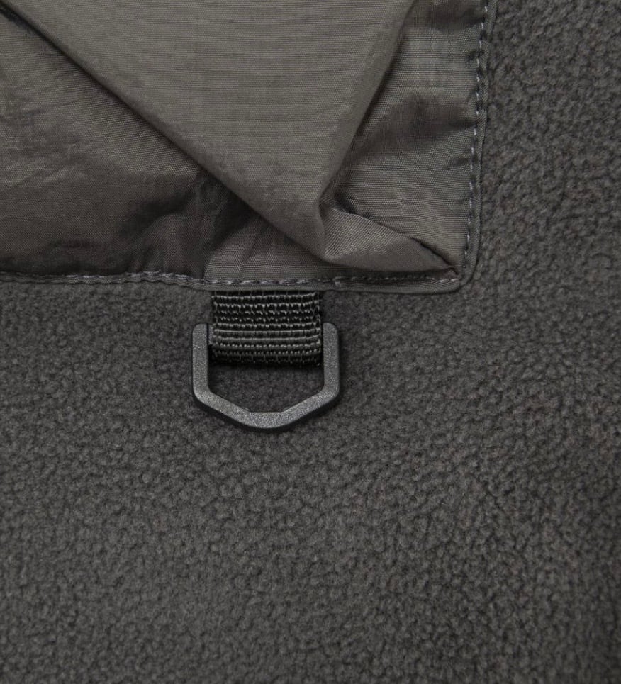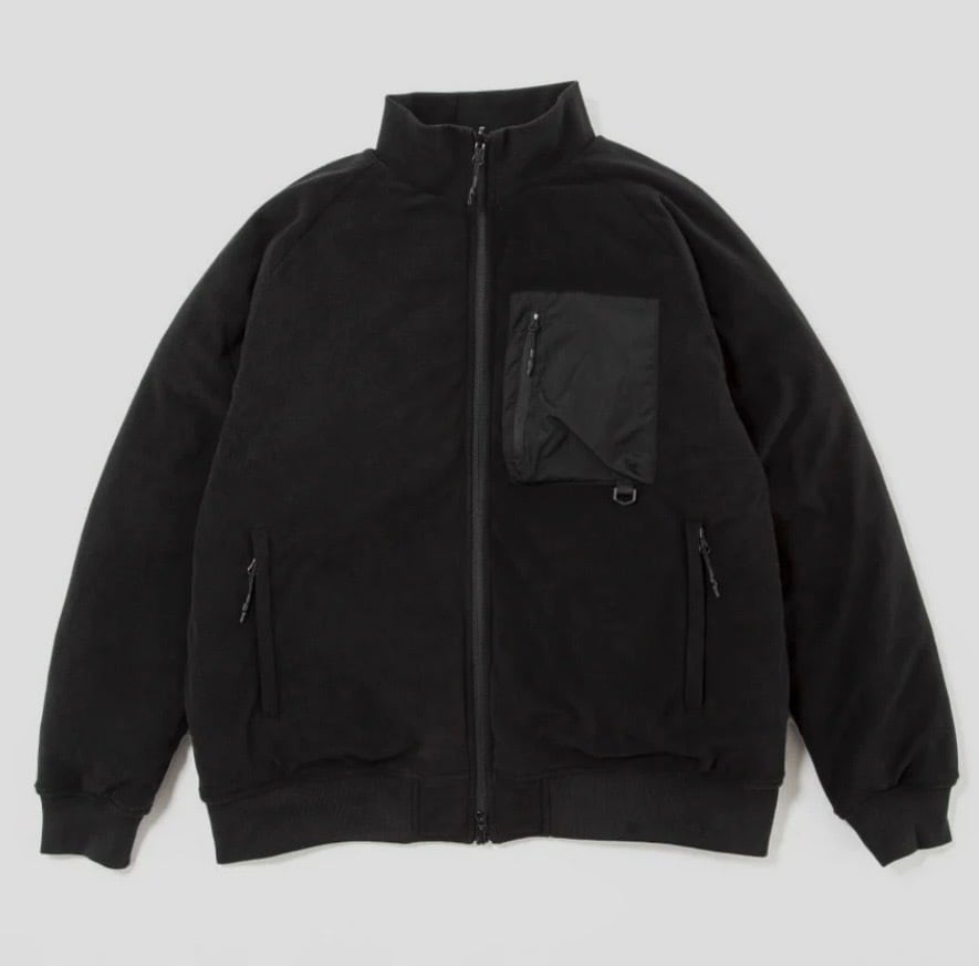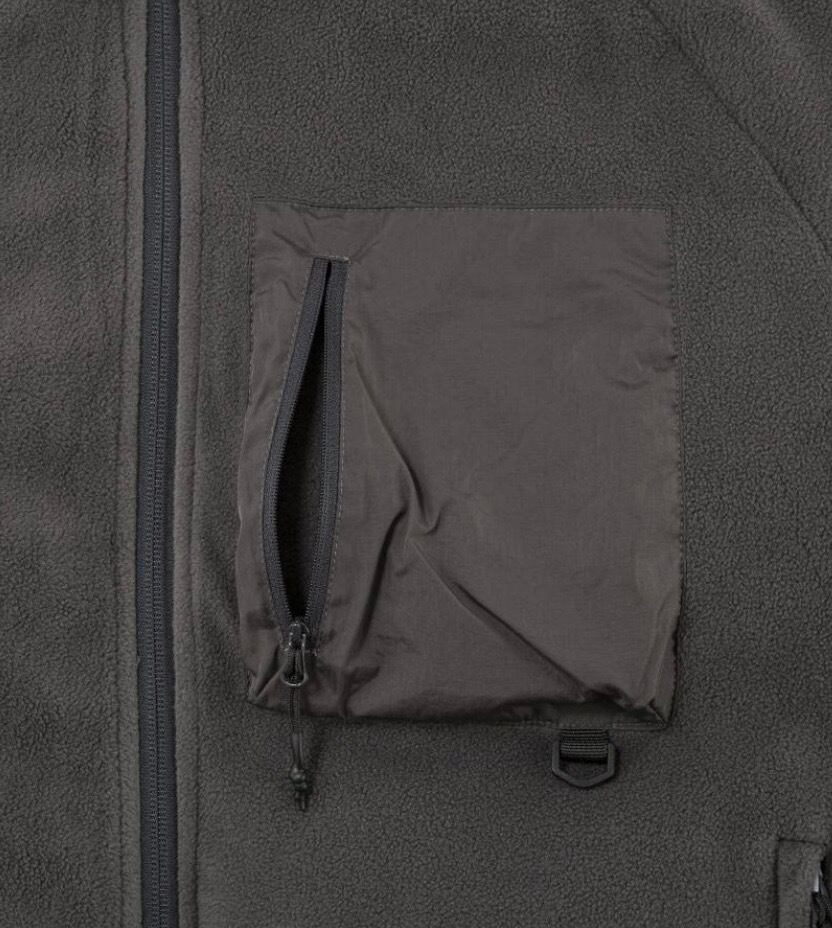 フリース面は、肌触りの良いマイクロフリースで、胸ポケットとDカンを配したアウトドアテイスト。