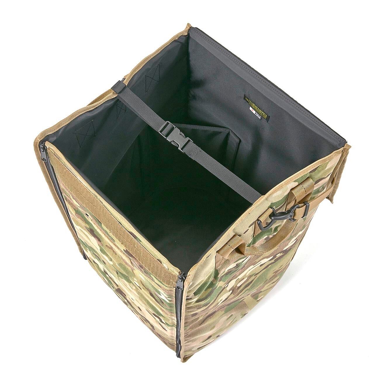 内部の一角に取り外しや折り畳みかが可能なコーナポケットを設け、ポンプ類等を縦挿し出来ます。(燃料なついている場合はビニール袋等に入れてから挿して下さい。)