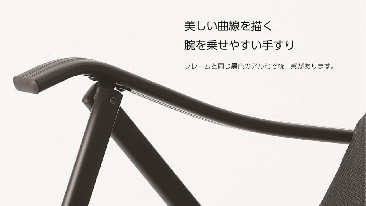 フレームと同じアルミ材で出来た手すりは、腕を置きやすい様に研究を重ねた結果の形状で、どなたでも手を置きやすいような形状になっています。