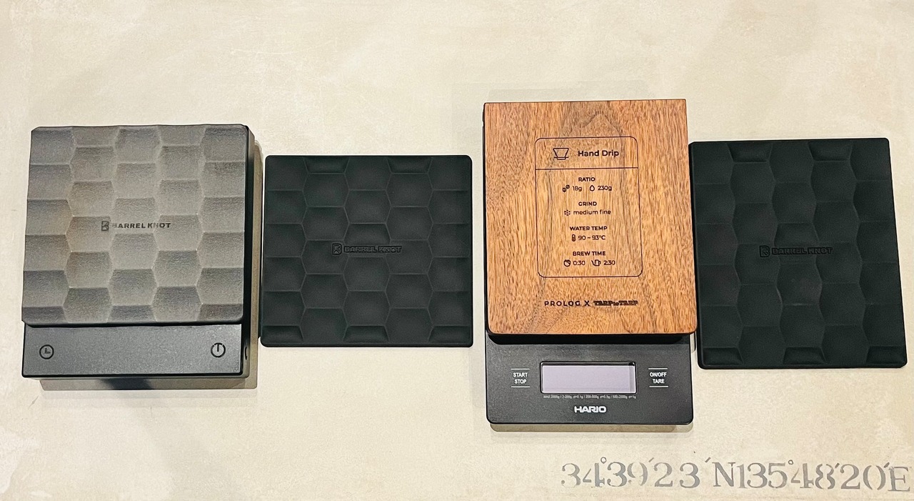ハリオ用スケールとタイムモア用スケールのシリコンマットです。