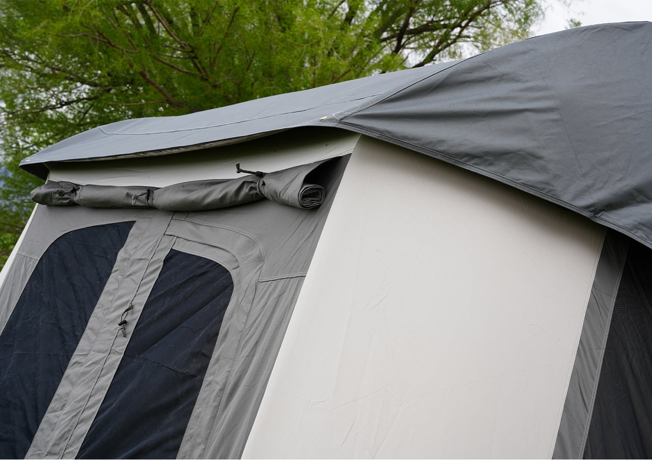 カバートップは、大切なFlex-Bowテントを守るための便利なアクセサリーです。