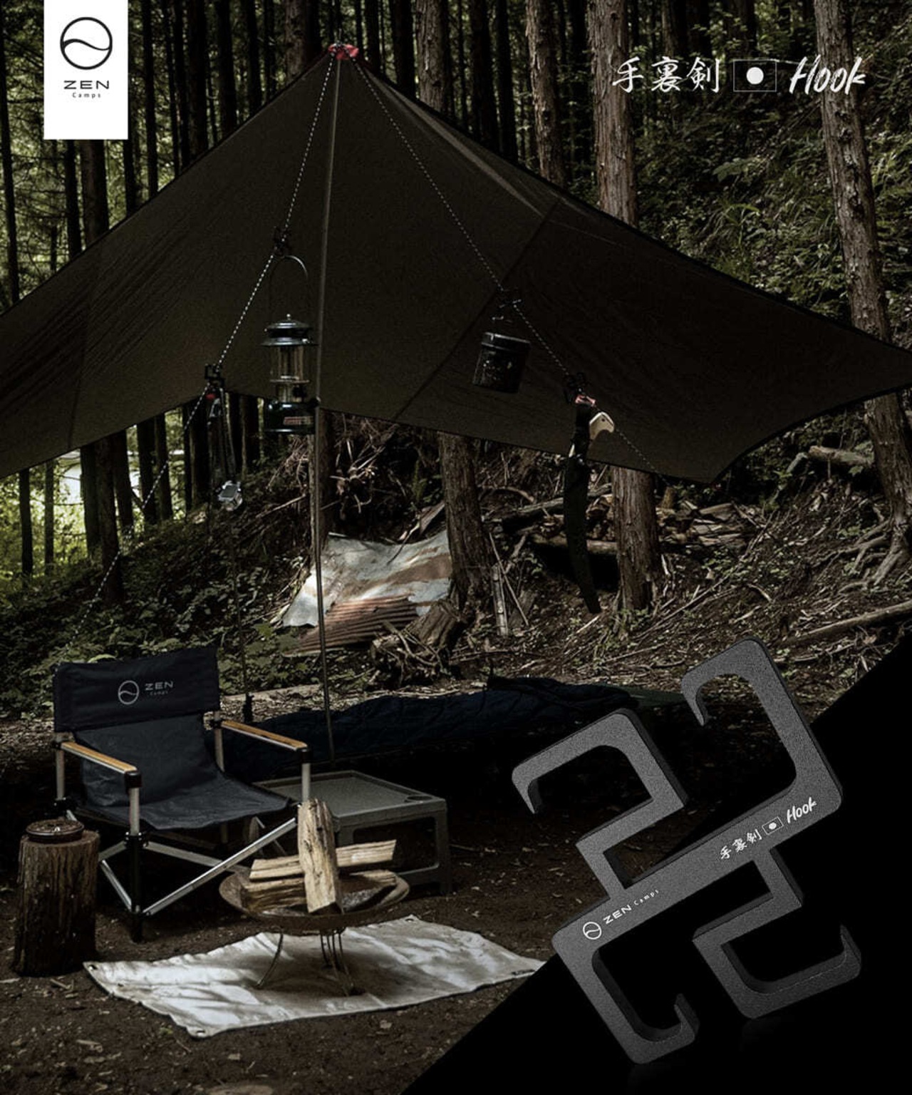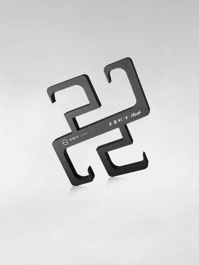 テントやタープのガイラインに固定したり、ポールに引っ掛けることでキャンプ用品を吊るすことができるキャンプ用フックです。手裏剣の形からヒントを得て製作しました。