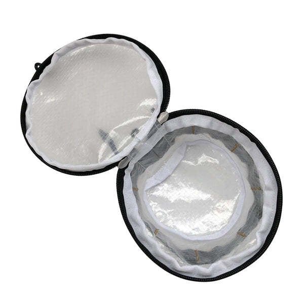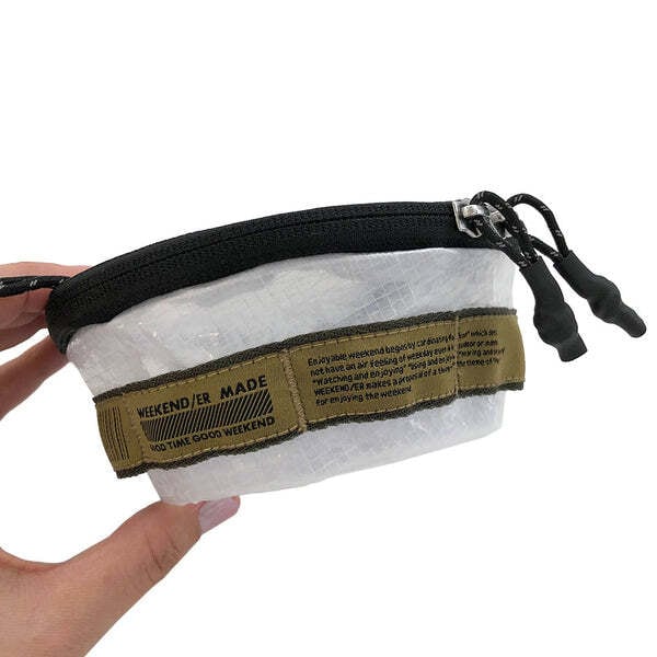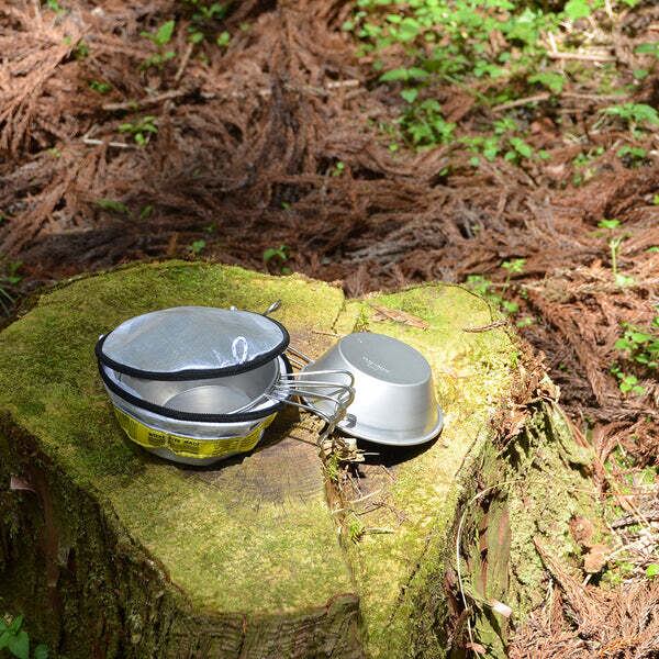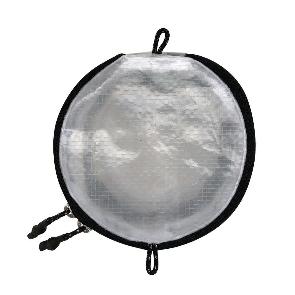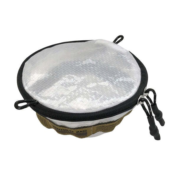 300mlのシェラカップが4個入る容量。 ループが付いているのでハンギングが可能です。 ループや引手のヒモはリフレクター素材の糸が織り込まれており、光が当たると反射します。
