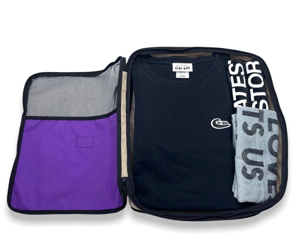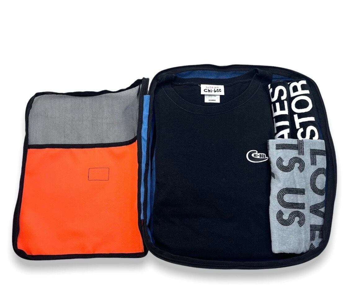 スーツケースの中で衣類を分別し、さらにちょっと薄くコンパクトに収納できる便利な大型ポーチです。