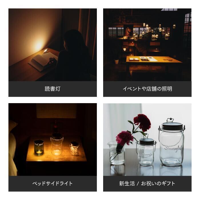 点灯時間は光量設定によって異なりますが、クラシック1000mlでは最長約120時間の連続点灯が可能です。