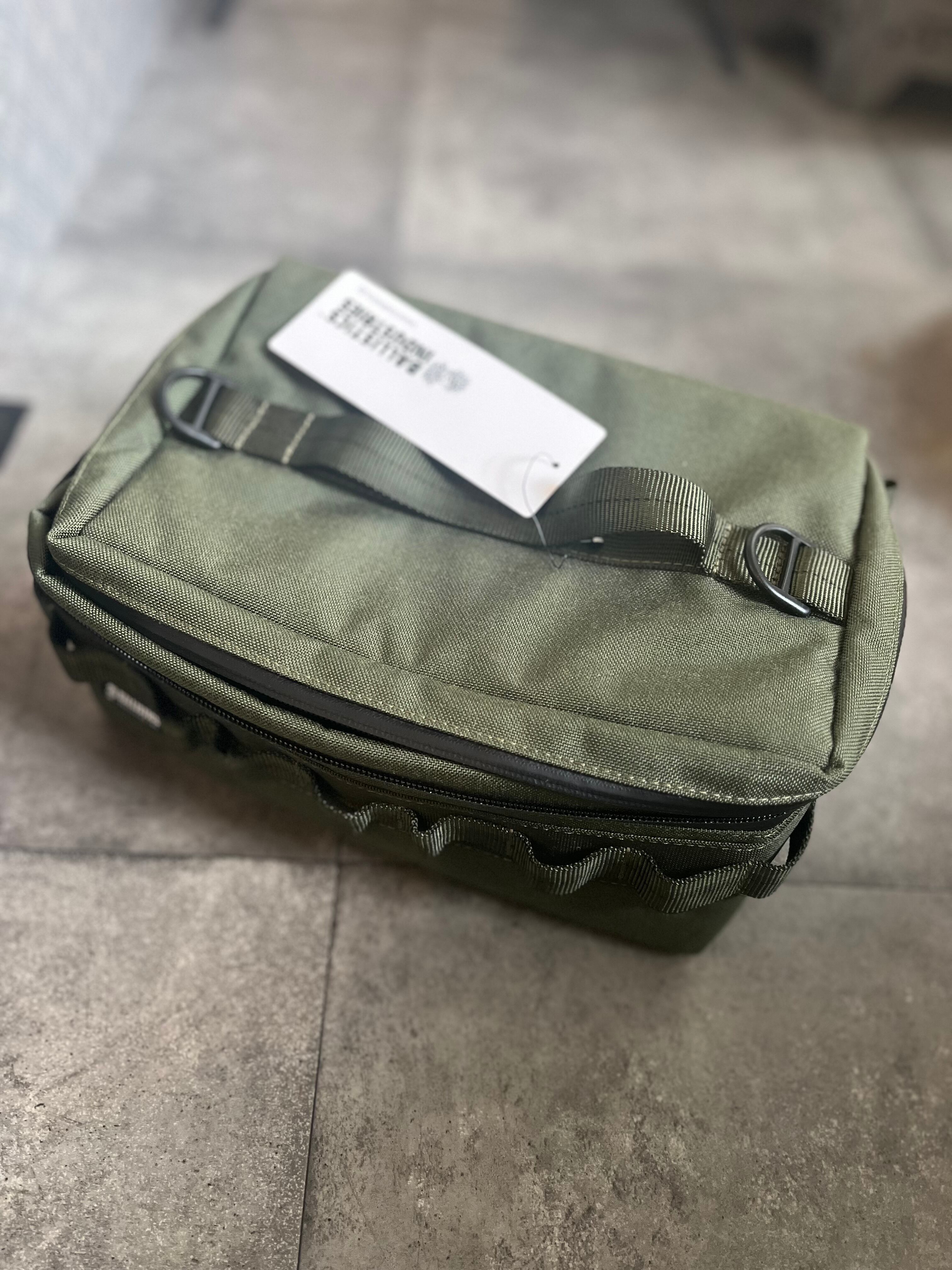 周囲にはデイジーチェーン配置いたしましたのでカラビナ等を接続して小物類をぶら下げる事も可能です。