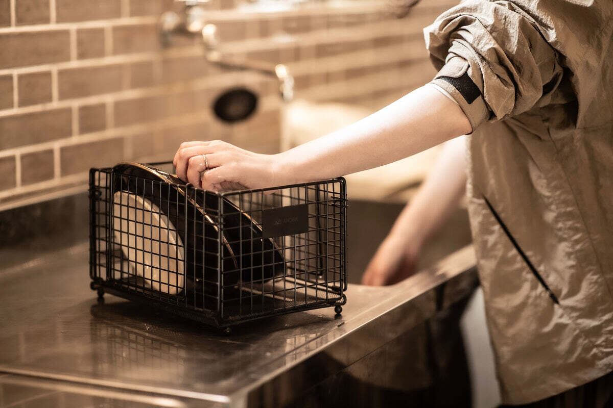 底面にはスチールボールを設ける事により、食器が乾きやすい仕様に。