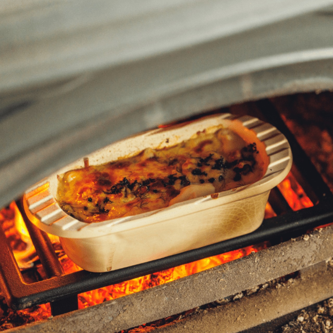 キャンプを愛するhimeユーザーから集まった声から生まれたギア。アウトドアならではの豪快な料理や、素材を丸ごと生かす料理に使えるギアのニーズに応えます。焚き火台を有効活用できる形とサイズ感。