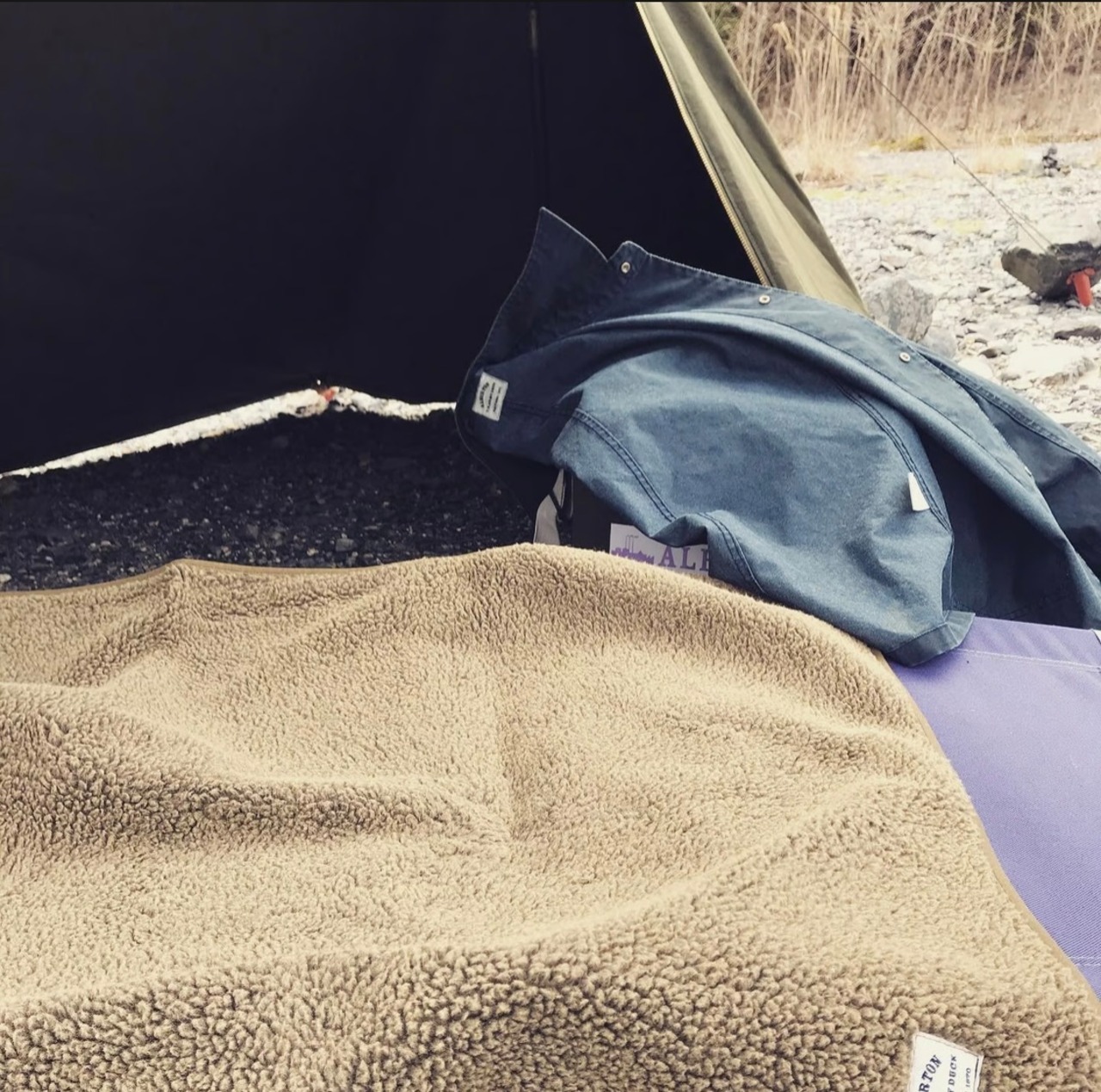 赤外線を吸収して温かくなる難燃ボアの焚火ブランケット
