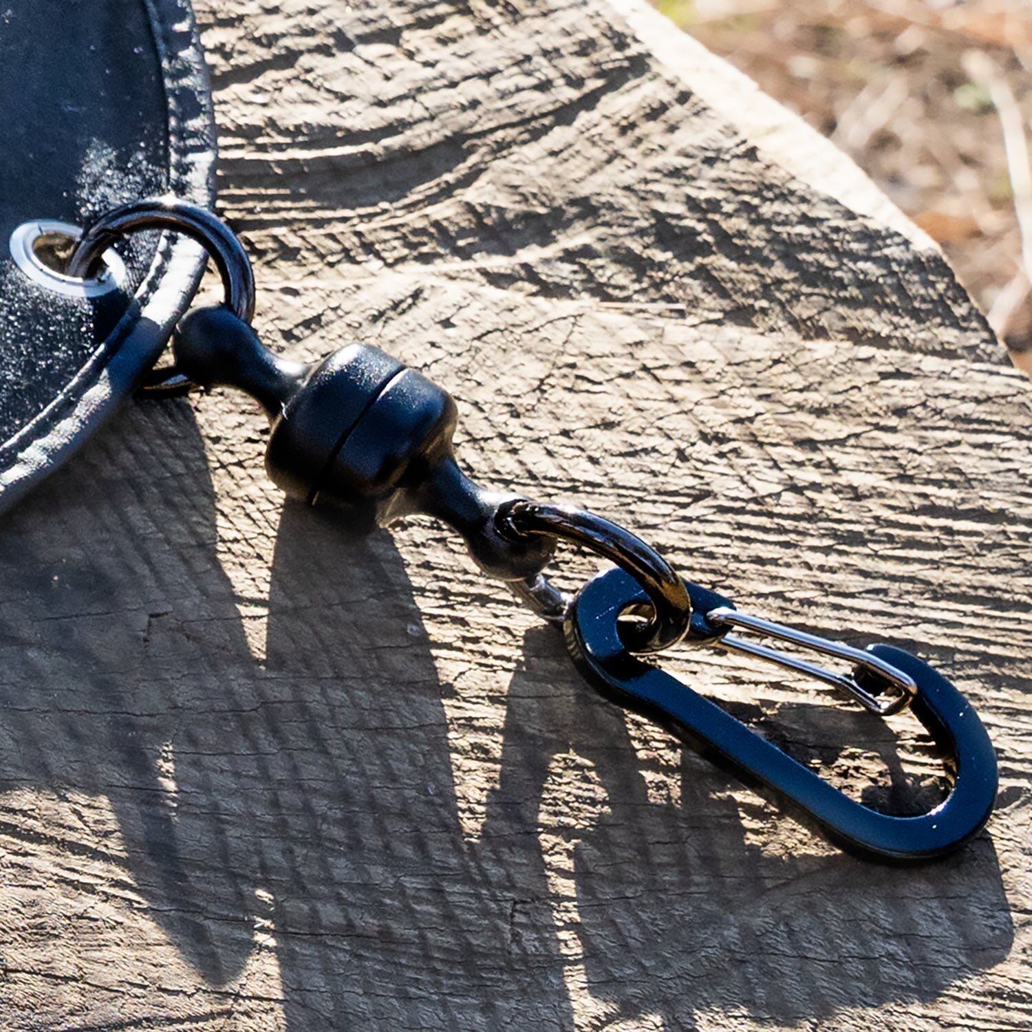 マグネット式のカラビナをベルトやベルトループに固定できるため、