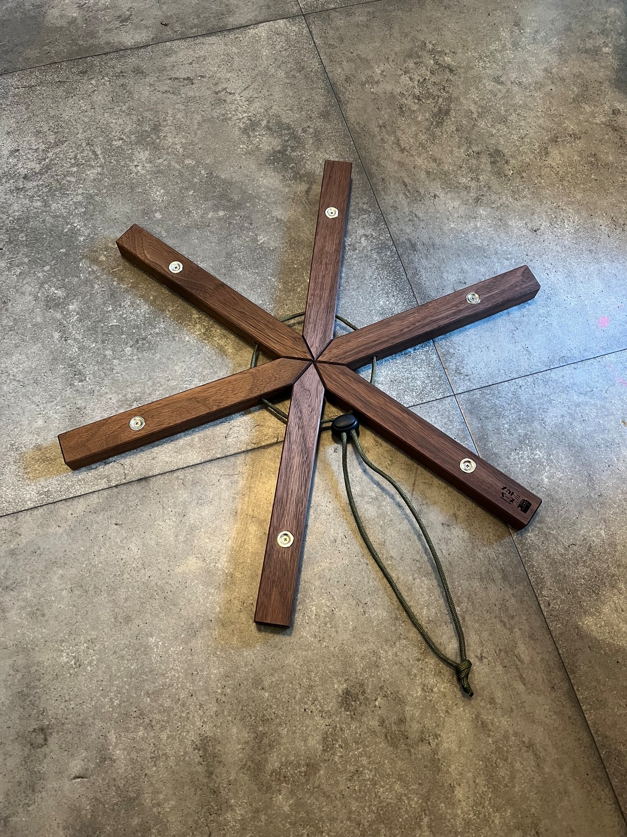 広げてドローコードで固定し、ストーブをのせてもらうと磁石でくっつきます!